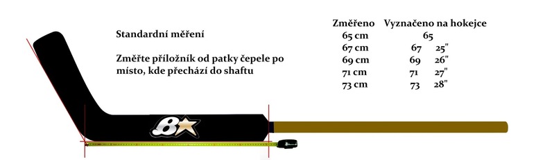 Tabulka velikostí slouží pouze pro orientaci. U brankářských hokejek je vždy nejlepší vyzkoušet, záleží na postavení brankáře.